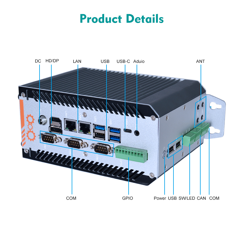 DC Phoenix terminal, 2 x LAN, 1 x HDMI, 1 x Mini DP, 1 x Type-C |