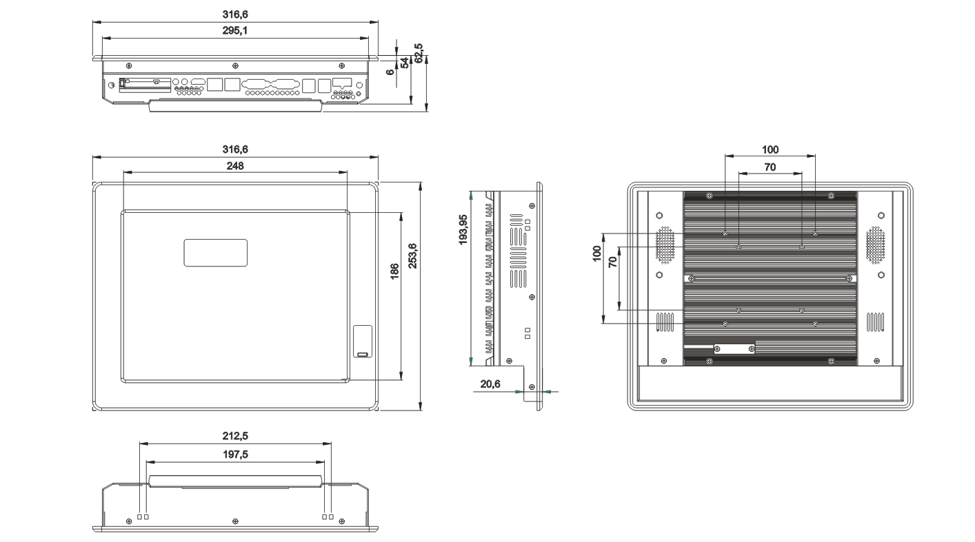 2*RS422/485/232為DB9接口 4個三線RS-232(鳳凰端子接口),