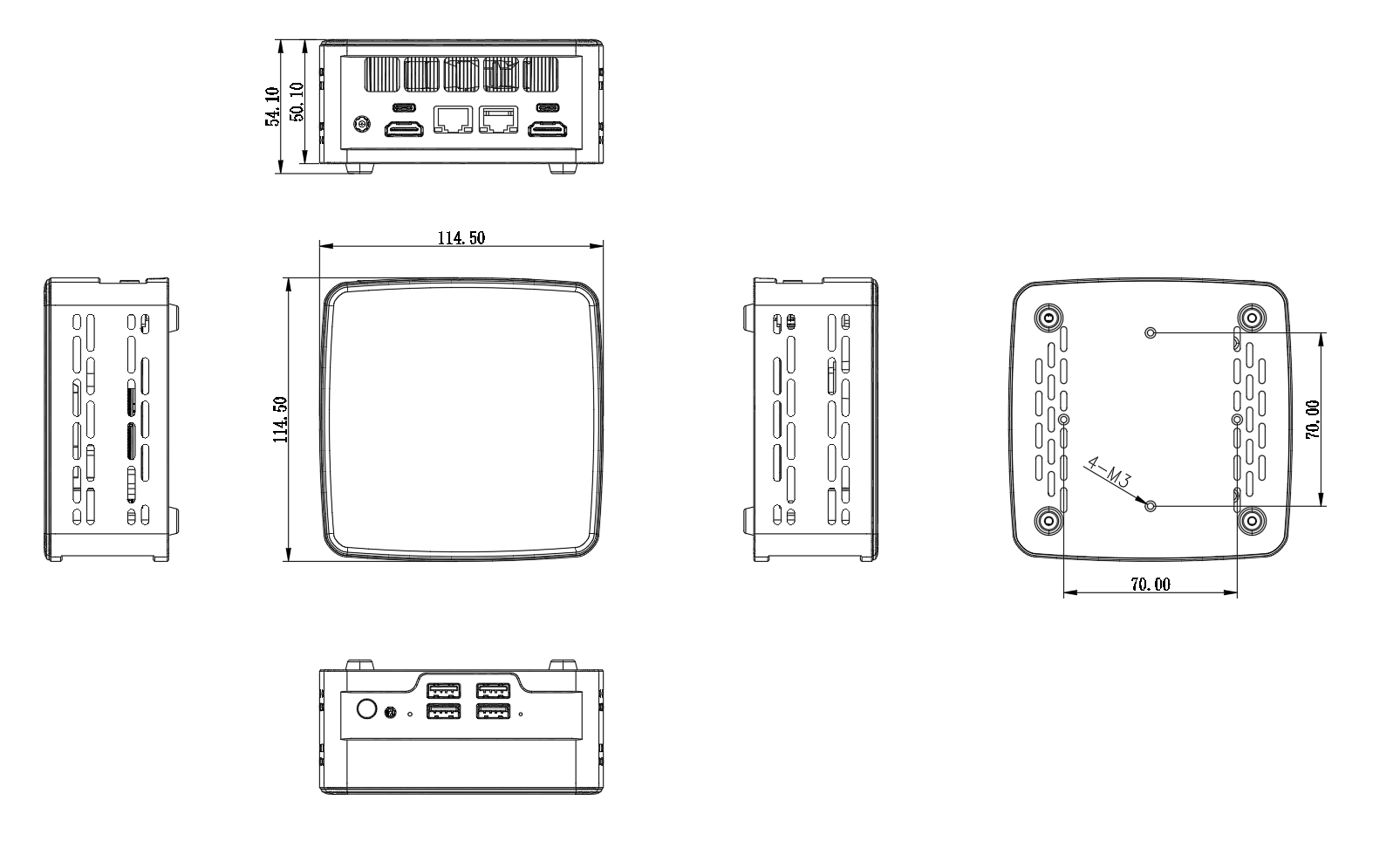 ◆ 尺寸:114.5x114.5x54.1mm