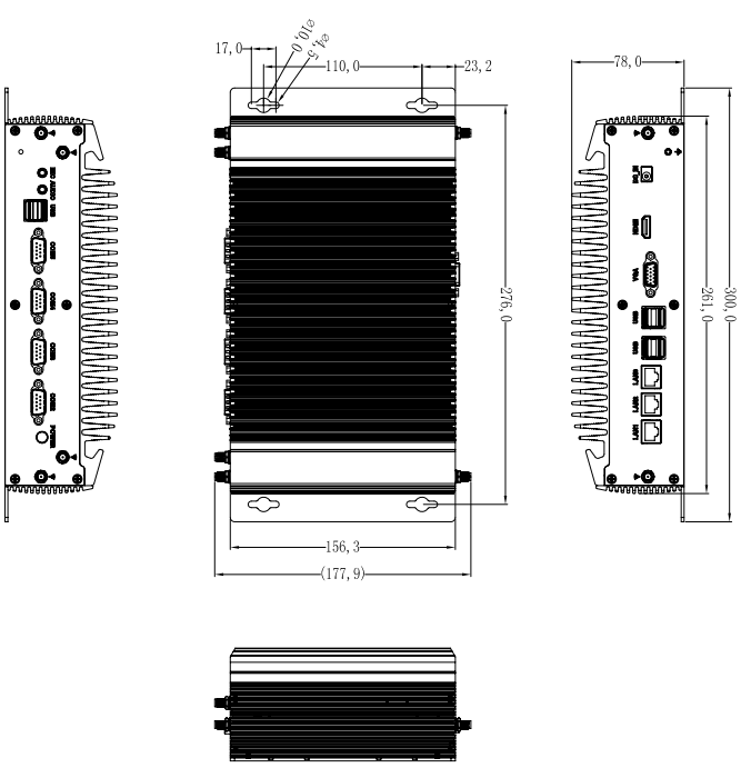 1*電源開關  2*USB3.1(GEN2) 1*LINE OUT 1*MIC IN 4*COM 4*WIFI/4G/5G天線接口
